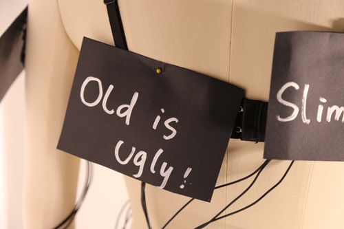 My installation will be two parts. One part is the woman figure and the other is thelabels. I’m going to use a mannequin to represent the women figure. Simultaneously, I will put on some very feminine clothes on the mannequin. There will be a lot of very famine elements on it. Also there will be real labels on it. The label part will be a screen. The screen will shows sentences and words to show the content on the labels. The words and sentences will keep popping up to the screen, also there will be audio keep playing, saying the same thing on the screen.